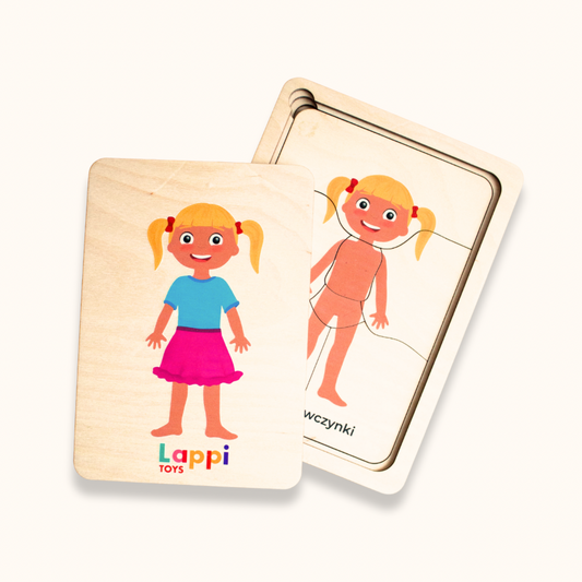 Ciało chłopca / ciało dzieczynki + karty edukacyjne - drewniane Układanki Montessori